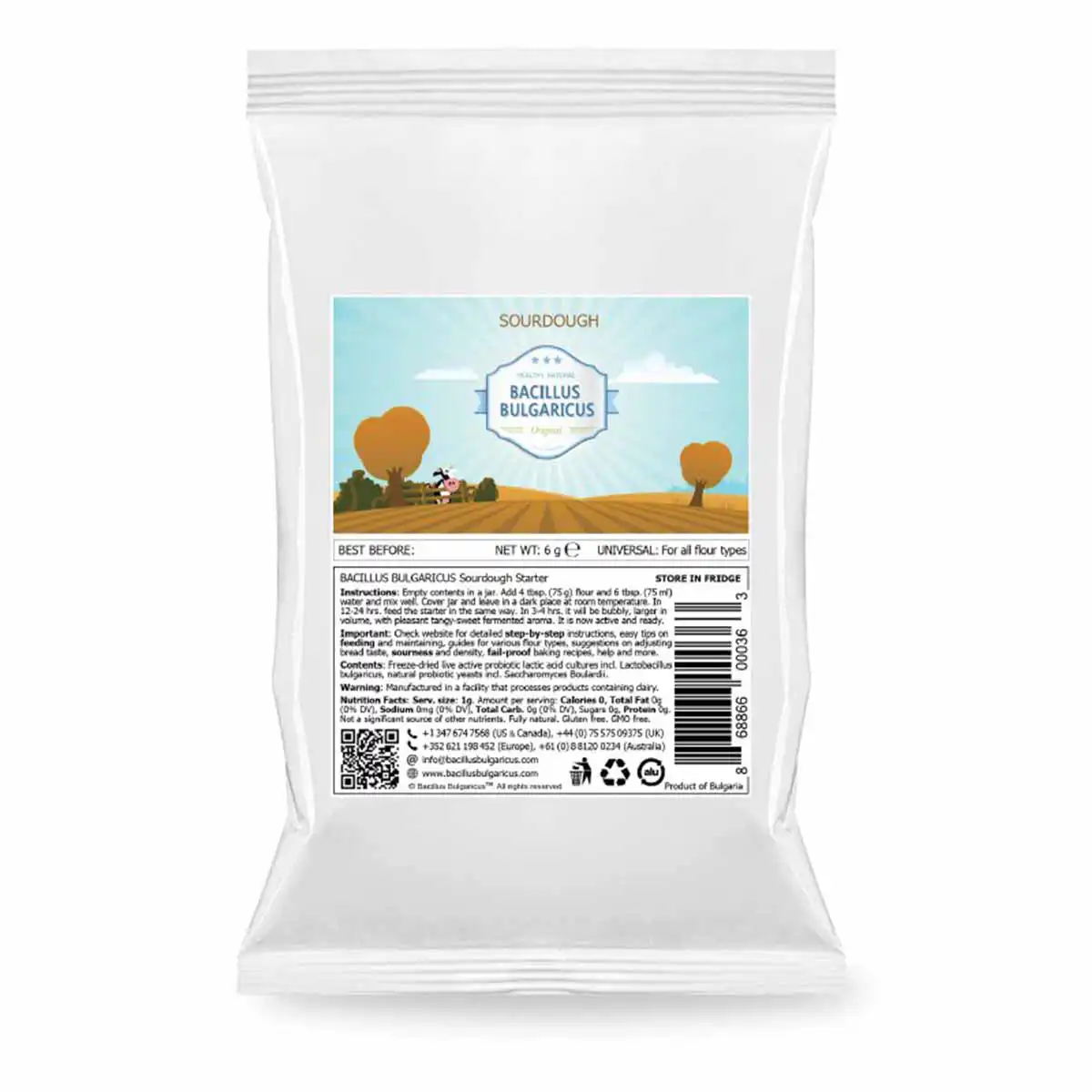 1 gram of starter contains more than 30 billion cfu of lactic acid probiotic bacteria strains. 100% potency guaranteed. - Bacillus Bulgaricus Sourdough Starter is different than the other sourdough starters available on the market. It contains colonies of lactic acid bacteria isolated from natural sources in ecologically preserved areas in Bulgaria including the famous Lactobacillus Bulgaricus.