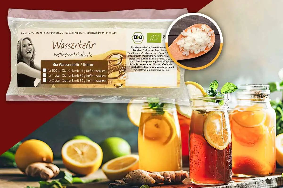 - Our certified Original with Growth Guarantee: You get one Organic Water Kefir – fully fermented Water Kefir drink as culture medium incl. Water Kefir grains (no less than 15g of water kefir grains/Tibicos). Ingredients: potable water, raw cane sugar*, whole cane sugar*, beet sugar*, figs*, lemons*, lemon juice*, Water Kefir culture (*certified organic farming, eco control authority DE-OEKO-006 / ABCERT AG, Esslingen, Germany)