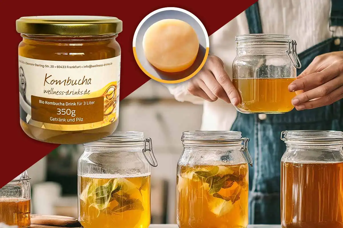- Das Original mit Zertifikat und Anwuchsgarantie: 700g (2 x 350g) Bio Kombucha, fertiges Kombucha-Getränk als Ansatzflüssigkeit inkl. Kombucha-Pilz (Durchmesser 9 cm). Zutaten: Teeaufguss (Trinkwasser, Schwarztee*, Grüntee*), Rohrohrzucker*, Rübenzucker*, Vollrohrzucker*, Kombucha-Kultur (*aus kontrolliert biologischem Anbau, Öko-Kontrollstelle DE-ÖKO-006).